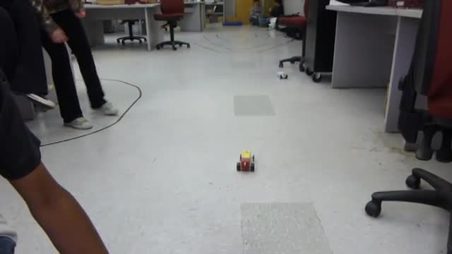Students trying to "knock out" each others robots.